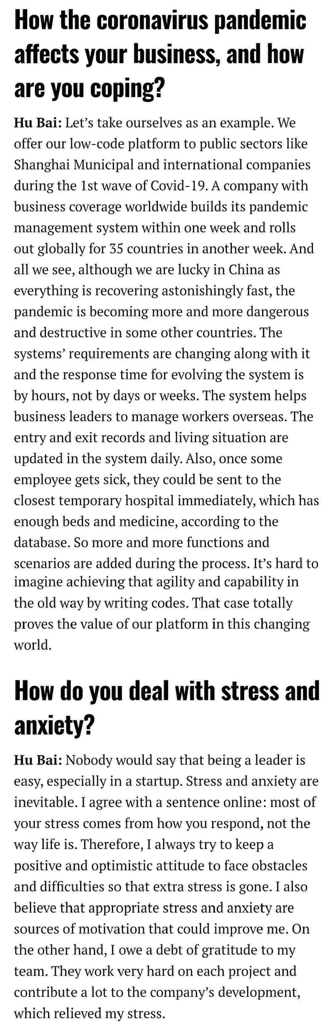 2021年年初,,,,,,,,爱湃斯科技CEO胡柏受邀接受法媒Startup.info的专访,,,,,,,,,与Startup info的读者分享了自己的创业经历、、、、、、、、、、、以及低代码平台NO钱包的创新之处。。。。。。